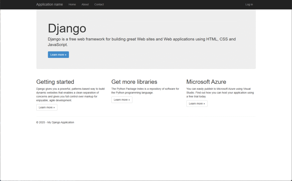 ローカルIISにデプロイしたDjangoアプリケーションが開きます。