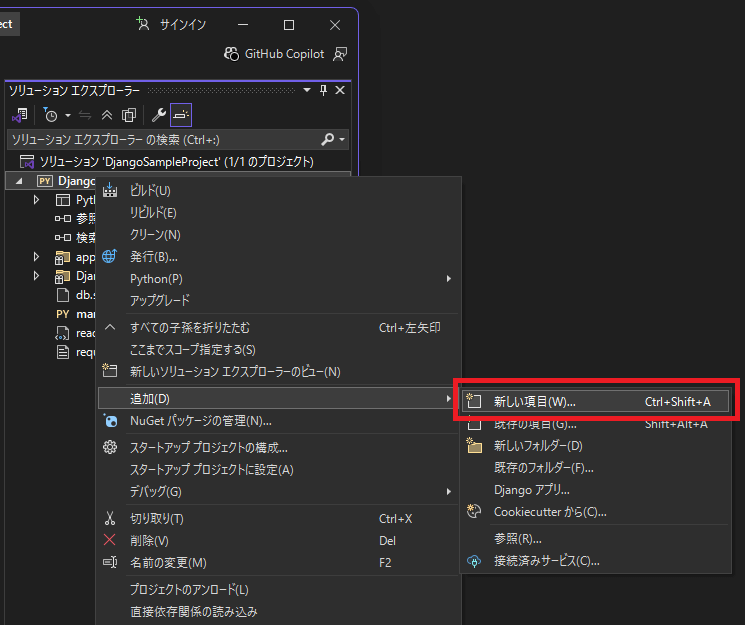 本記事ではDjangoプロジェクト作成および一部ファイルのテンプレート利用のためにVisualStudioを使用しました。