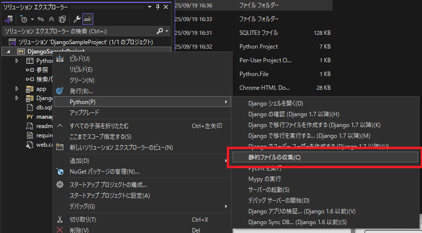 VisualStudioでのDjangoプロジェクト作成(および実行までの)方法については以下を参照ください。